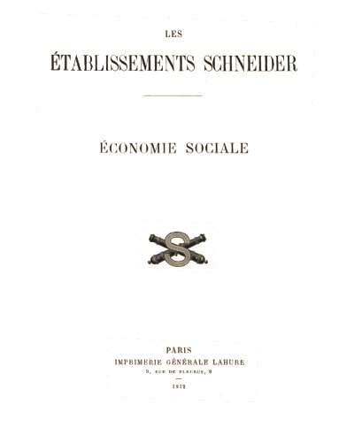 « Les hommes de métier n'ont pas seuls des enseignements à tirer du Creusot; en parcourant la ville, en faisant connaissance avec les habitants ..., le moraliste, le philosophe, l'économiste trouveraient aussi ... le sujet de plus d'une étude et matière à plus d'une observation. » Telle était, en 1866, la conclusion d'un travail relatif à la grande industrie française. Dès cette époque, en effet, MM. Schneider n'avaient pas seulement donné un merveilleux essor à leurs fabrications, ils avaient aussi pris de nombreuses initiatives en vue de développer, à tous égards, le bien-être de leur personnel.