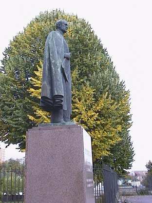 La statue en bronze de Paul Landowsky a été inaugurée le 30 septembre 1951. Eugène y est représenté en tenue d'académicien, l'épée au côté. Eugène Schneider, Maître de Forges, Membre de l'Institut,