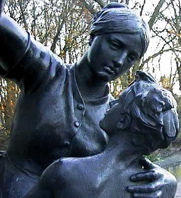 ![]() Emplacement actuel (en haut) dans un angle de la place, vers l'entrée du Parc de la Verrerie située Place Schneider. Ancien emplacement (en bas) au centre de la Place Schneider. |
